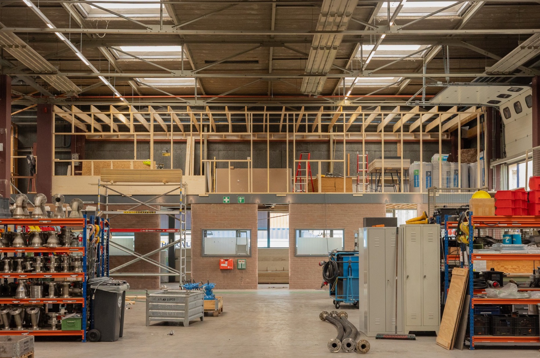 Tijdens de verbouwing bleef de hal van Atlas Copco volledig in gebruik. Dit vroeg om goede afstemming en nauwe samenwerking met de opdrachtgever en medewerkers op locatie. Dankzij de open communicatie en fijne samenwerking verliep het proces soepel en konden we volgens de planning opleveren.